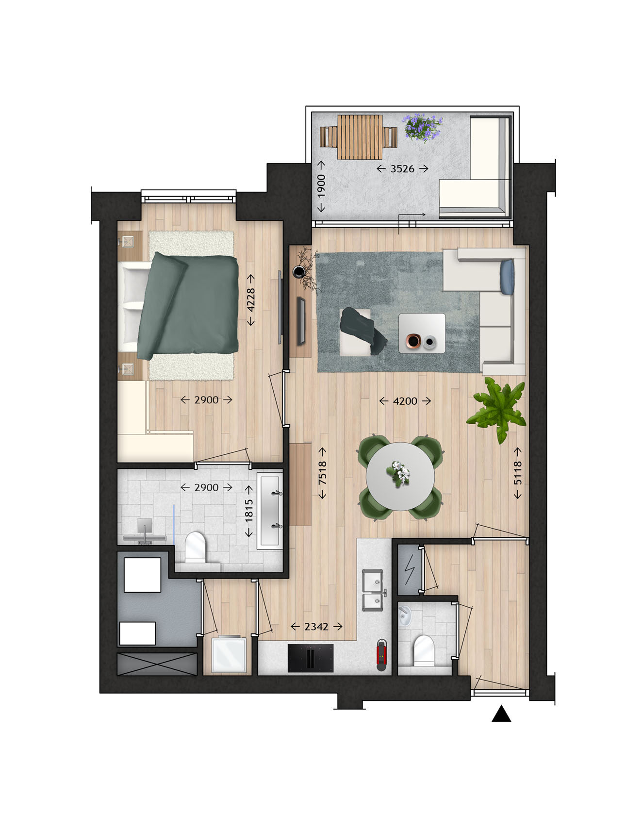 Appartement 21 van gebouw A is gelegen op de derde verdieping en heeft een oppervlakte van 56m2. Het balkon met een oppervlakte van 7 m2 is gelegen op het zuidoosten. Een fijn tweekamer appartement met een ruime slaapkamer.